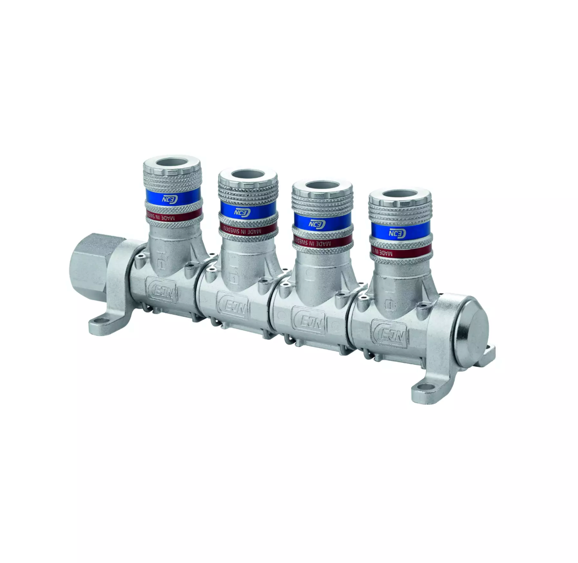 Usealla ulostulolla varustettu 320-sarjan eSafe Multi-Link on monipuolinen ja suorituskykyinen ratkaisu. Saatavana 1 – 5 ulostulolla. Yksikköjä yhdistämällä voidaan muodostaa suurempia kokonaisuuksia. Yhdistettynä CEJNin polyuretaaniletkuun ja ilmankäsittely-yksikköön voidaan Multi-Linkin avulla rakentaa joustava ja suorituskykyinen ilmanjakelujärjestelmä. Sarjan 320 eSafe Multi-Link täyttää standardien ISO 4414 ja EN 983 vaatimukset. Sen perusominaisuuksia ovat yhdenkädenliitäntä, hyvät virtausarvot ja pitkä käyttöikä.Pienikokoiset jakotukit turvaliittimin. Valmiita, kokonaisia yksiköitä; eivät vaadi kokoamista. Ulostulojen asentoa voidaan säätää 180°.