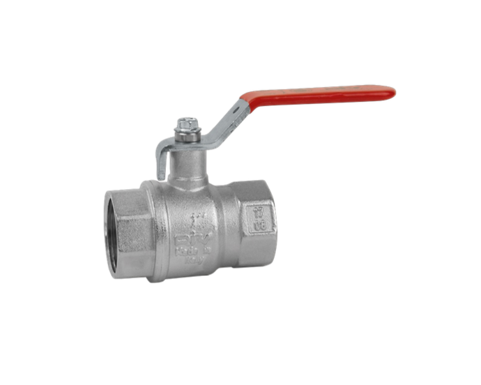 Laadukas eurooppalainen messinkinen pallohana kahvalla. Täysaukkoinen PTFE-tiivistein. Valmistaja RIV Rubinetterie Italiane Velatta SpA.